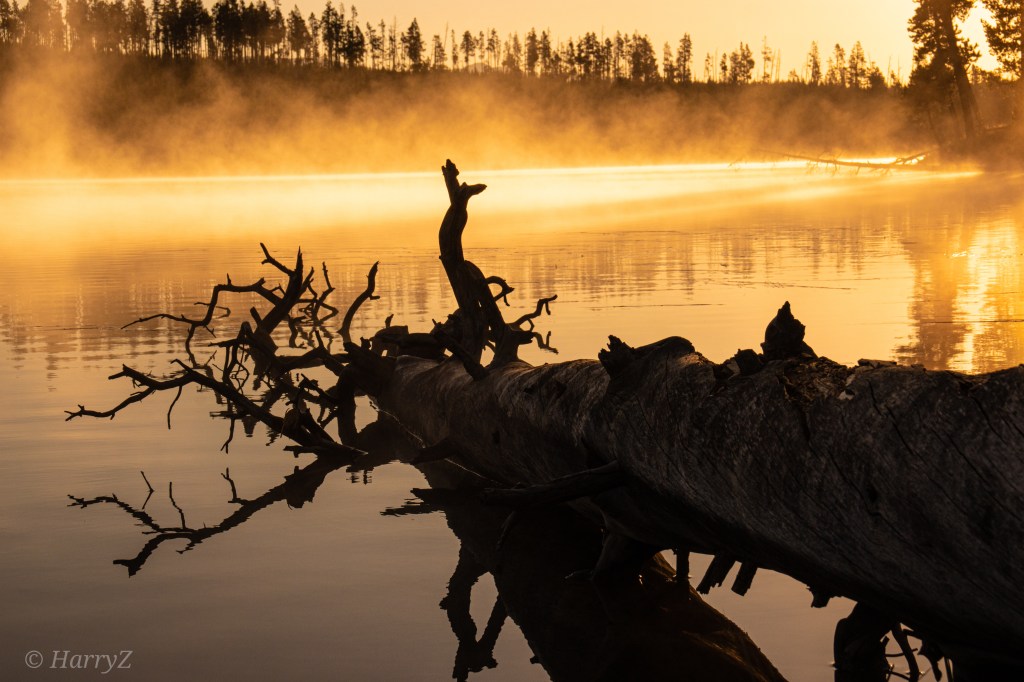 It was 6 am and day three of our yellowstone trip. A magical mist hung over the mirror smooth Ice Lake. The pure silence created what felt like infinite space and serenity. Just then, a few rays shined through to trees from the east and began to pour golden light over the lake.